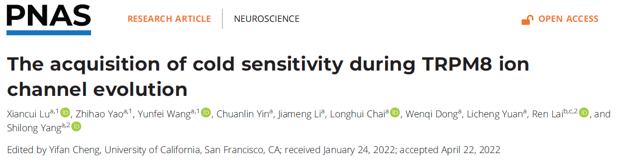 我院杨仕隆课题组在动物登陆演化与TRPM8冷激活机理方面取得新进展