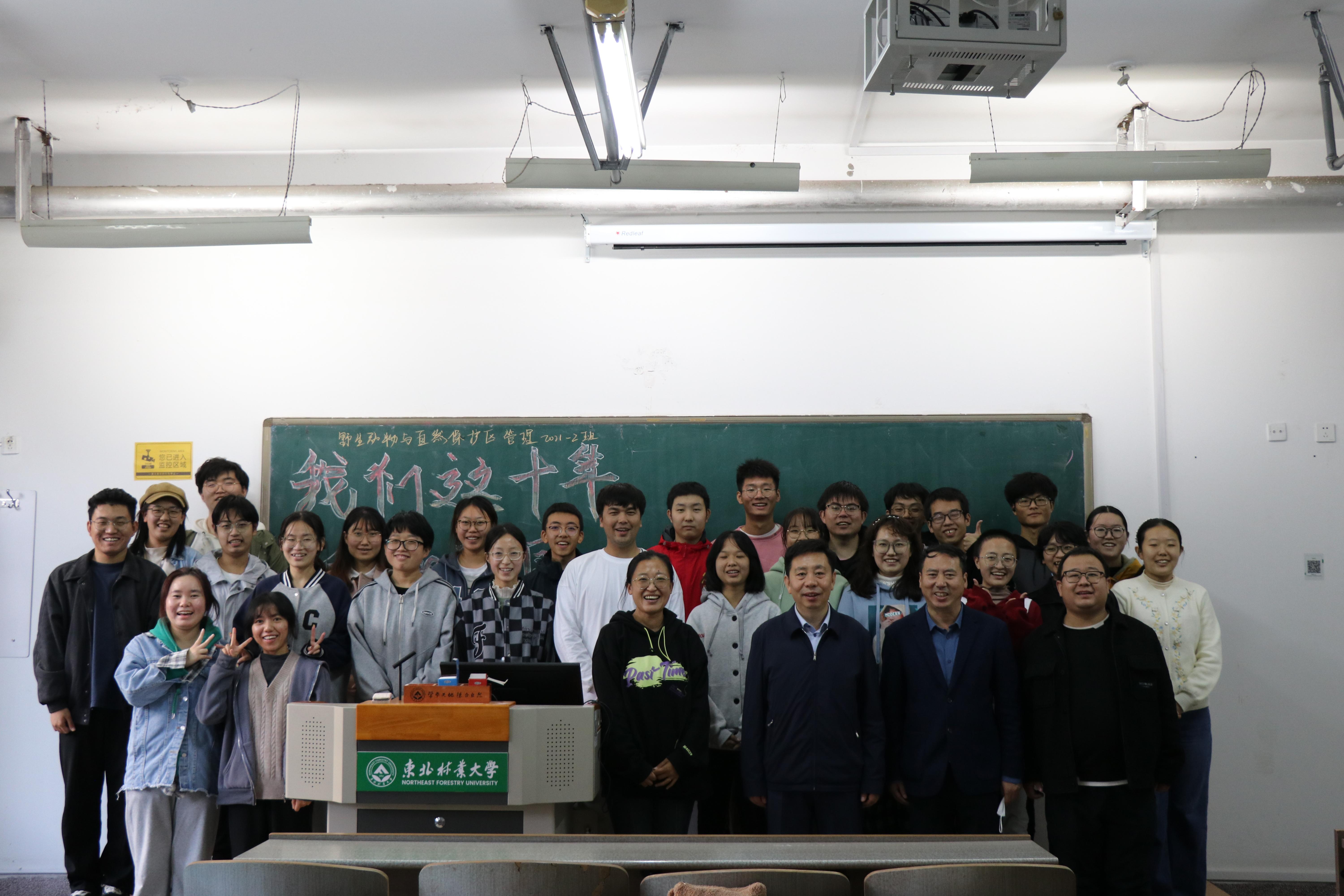 10月10日,学校党委常委、副校长刘守新来到丹青楼106教室,参加野生动物与自然保护地学院2021级野生动物与自然保护地区管理专业2班“这十年,我与祖国共成长”主题班会,并以“我们这一代的十年”为主题给同学们讲了一次生动的思政课。2021级野生动物与自然保护区管理专业2班全体同学,学院党委书记吴庆禹,党委副书记、副院长高璐璐,2021级辅导员边佳一同参会。