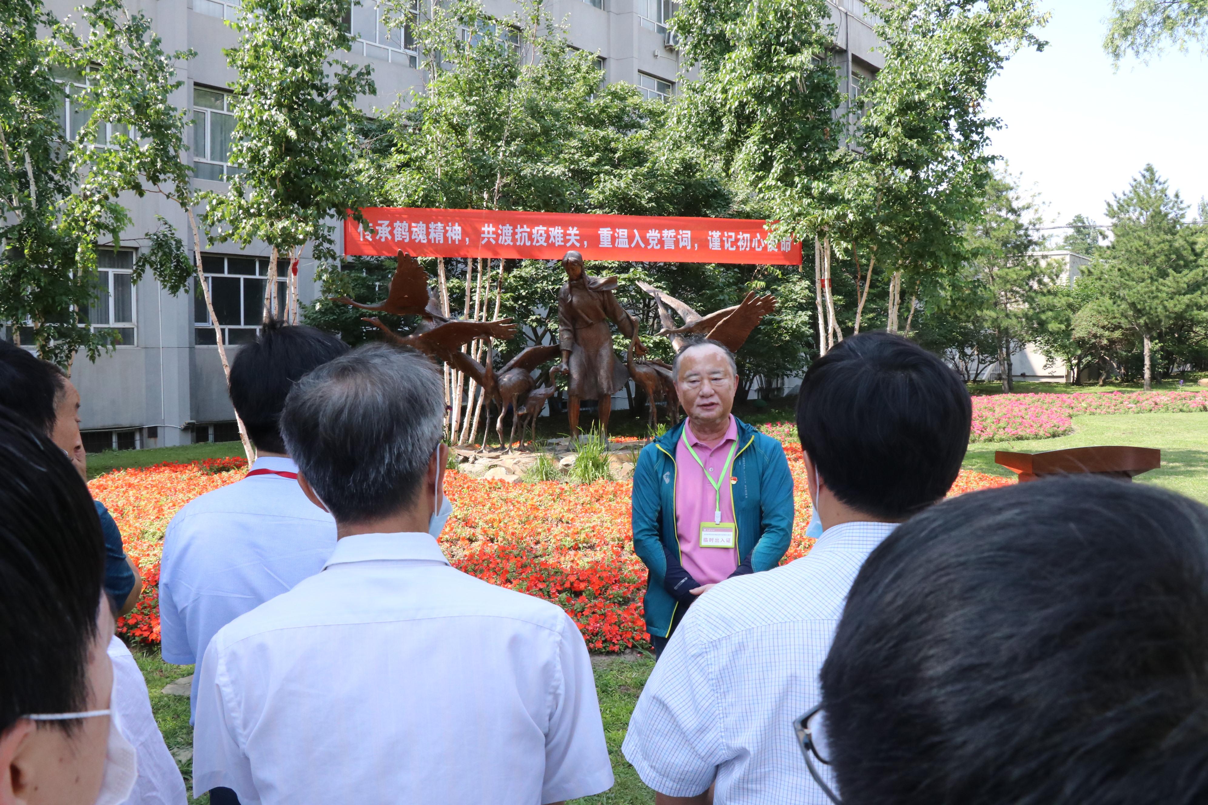 在建党99周年之际,为深入学习贯彻习近平新时代中国特色社会主义思想,进一步激发广大党员干事创业的的热情,动保学院党委于7月1日下午,在徐秀娟烈士塑像前通过线上线下相结合的形式组织开展了“传承鹤魂精神,共渡抗疫难关;重温入党誓词,谨记初心使命”主题党日活动。中国工程院院士、动保学院名誉院长马建章,学校党委常委、副校长刘守新,动保学院77级优秀校友吴建平,动保学院78级优秀校友、黑龙江省动物学会理事长王进军,学院领导班子成员、教工党员和学生党员参加了本次活动。