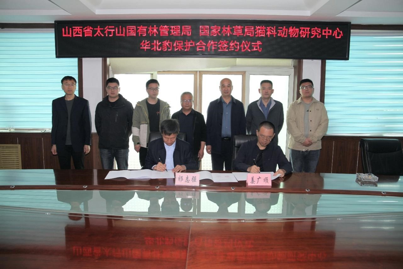 4月30日,姜广顺教授与山西省太行山国有林管理局局长祁志强共同签署了“战略合作协议书”。山西省林业和草原局野生动植物管理处副处长史磊、山西省太行山国有林管理局局长祁志强、山西省铁桥山自然保护区管理局局长李瑞平与姜广顺教授共同为“国家林业和草原局猫科动物研究中心华北豹保护科学研究基地”揭牌。双方将在华北豹智慧化监测、科研宣教、人才队伍建设等方面开展密切合作,共同推进华北豹保护事业的发展。