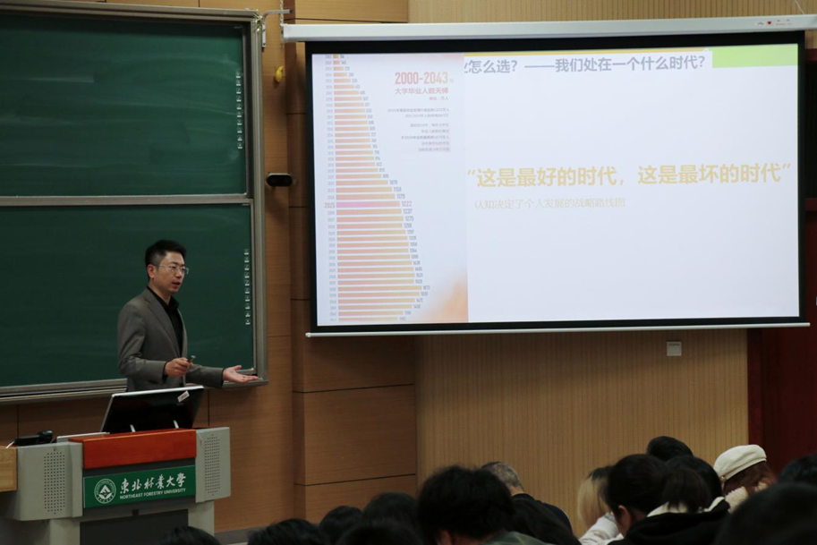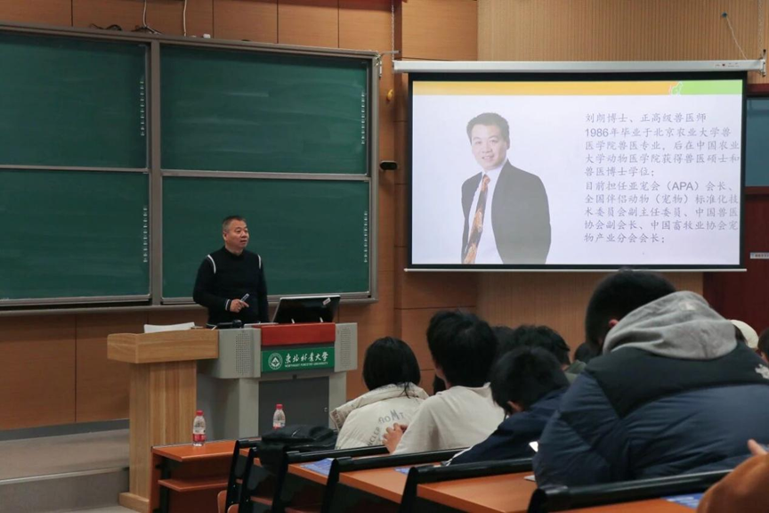会上,刘朗博士以《行业趋势与职业价值:解锁宠物医疗黄金未来》为题,从学生个人职业生涯规划出发,结合实际案例,重点围绕时代发展趋势、个人发展机遇以及动物医学发展意义进行宣讲。